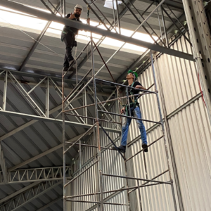 *Aqui é possível notar a presença de alguns EPI’s essenciais para execução na norma como: Capacetes, talabartes, botas, trava quedas e mais.